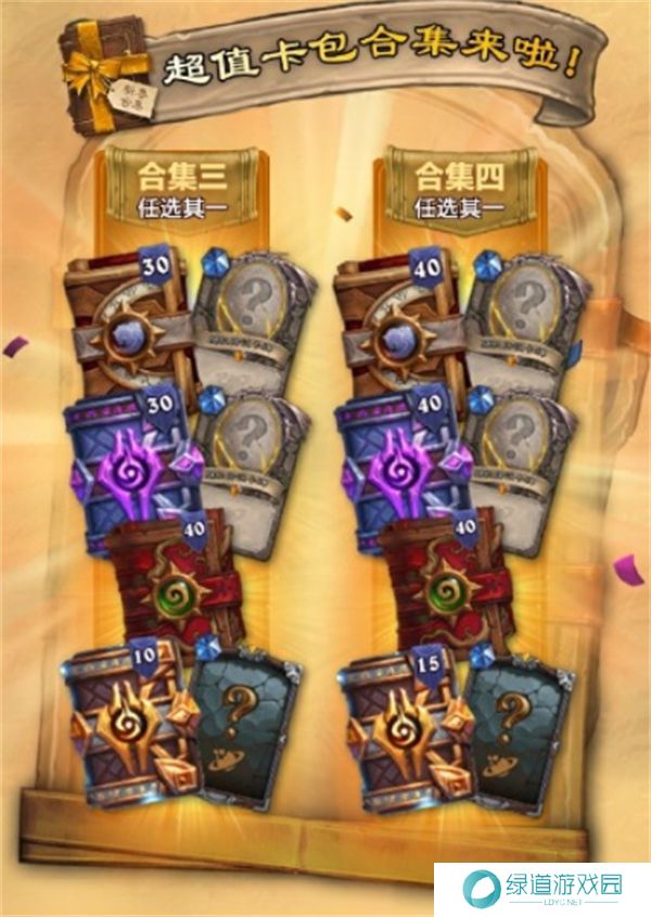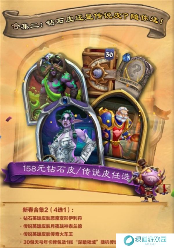 消费30元:可领取英雄皮肤/卡背(洛瑟玛赛隆)或2包深暗领域卡包。