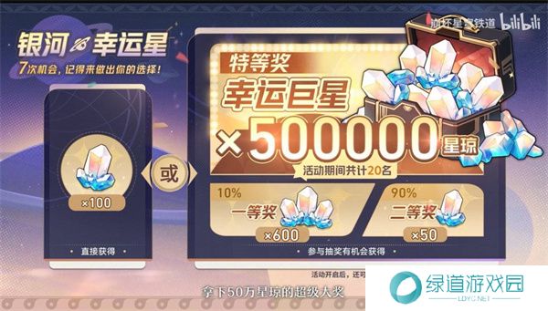 崩坏星穹铁道开启了银河幸运星活动,玩家一共有两个选项,要么每天固定拿100星琼,要么抽奖有概率获得50万星琼,。对于玩家来说,到底是哪个选择会比较好呢?这里小编为各位带来了崩坏星穹铁道银河幸运星活动抽奖推荐指南,希望对你有帮助。