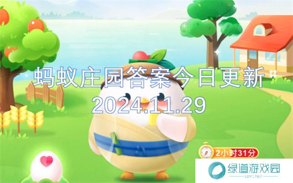 以上就是蚂蚁庄园答案今日更新2024.11.29的全部内容,希望对你有帮助。想查找更多游戏攻略,欢迎持续关注本站查看。