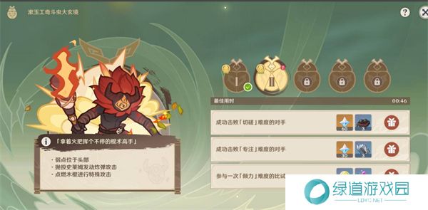 在原神5.3版本的“漱玉工奇斗虫大玄境”挑战中,第二天的斗虫对手是一个拿着火把挥个不停的棍术高手。一些玩家难以在这个挑战中获取全部奖励,因此为了帮助大家轻松拿到满奖励,以下是详细的原神漱玉工奇斗虫大玄境第二天如何拿满奖励攻略,希望能对你有所帮助。