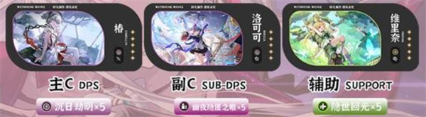 椿作为核心输出角色,拥有极高的单体爆发能力,适合快速击杀高血量敌人。洛可可作为专辅角色,能够为椿提供额外的伤害加成和控场效果,进一步提升椿的输出效率。维里奈负责提供治疗和增益效果,在维里奈的辅助下,椿可以保持高效输出,并且不会因为伤害过高而面临生存问题。洛可可的控场能力和增伤效果也让团队在面对大多数敌人时更加游刃有余。