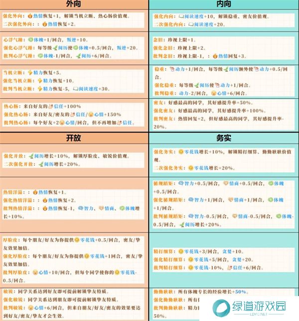 外向:体魄流和情商流玩家优选。外向的人物通常在体力和社交方面有较强的优势,适合进行各种交际和体力活动。