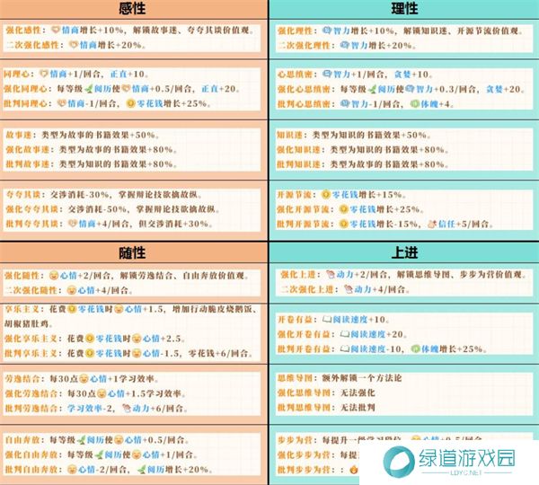 理性:适合所有其他流派,尤其是关注开源节流的玩家。理性可以帮助你在学习、工作中保持高效,并合理规划资源。
