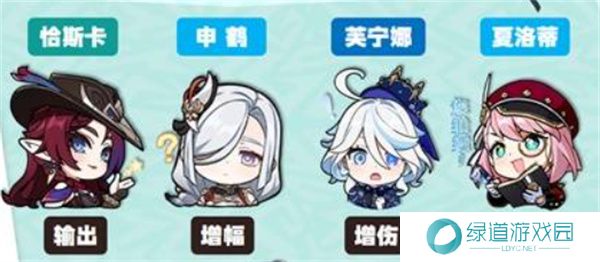 恰芙申夏:芙宁娜EQ、申鹤EQ、夏洛蒂EQ、恰斯卡E后输出(Q)。