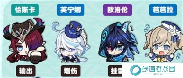 芙宁娜EQ、芭芭拉E(Q)、欧洛伦EQ、恰斯卡E后输出(Q)。