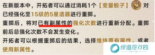 变量骰子可以重置已强化到15级的遗器的强化词条,随机分配新的强化词条。这意味着玩家可以在不改变遗器初始词条的情况下,尝试获得更符合自己需求的强化效果。