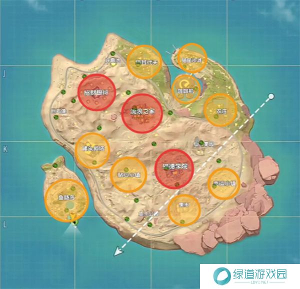 在喵沙岛,合理的落点选择直接决定了你能否在比赛中占据优势。以下是地图上几种不同资源区的详细划分: