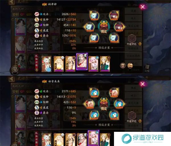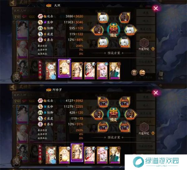 天照:狂荒/隐荒,速攻暴,作为输出式神,负责提供高额的伤害。