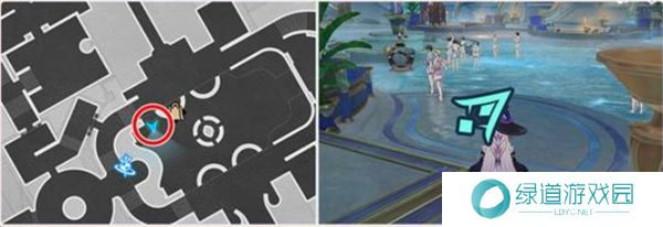 任务开始后,追踪任务并前往下图中的第1和第2任务点,分别与NPC对话。