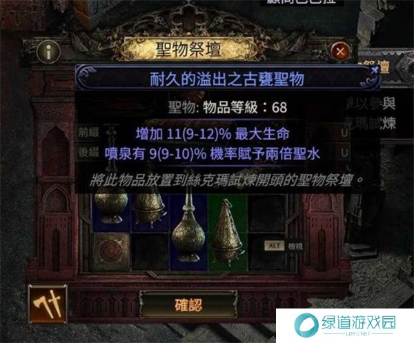 圣物:试炼中的关键道具,通过击杀怪物掉落,放置在圣物祭坛后可为人物提供强力加成。