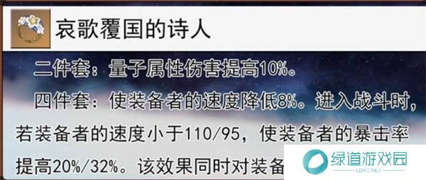 效果:该套装可以减缓敌人的速度,尤其适合缇宝没有额外速度提升的情况下使用。减少敌人速度能有效增加你队伍的控制和输出能力,降低敌人反击的威胁,提升缇宝的辅助效能。