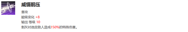 战术技能:随机对范围内的敌人造成6次伤害。每次伤害会提升10%,如果是同一个敌人,伤害逐渐加成,但这6次伤害都是单体的,不是群体伤害,所以她的伤害最高可以达到300%的单体伤害。