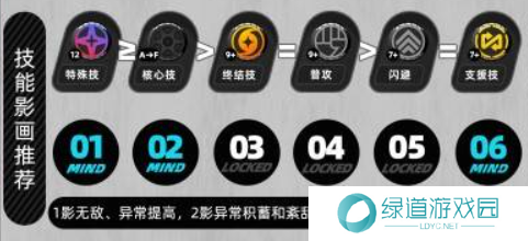 1影画:带有无敌状态和异常提高,大幅提升生存和异常状态伤害。适合平衡的输出和生存,推荐提升。