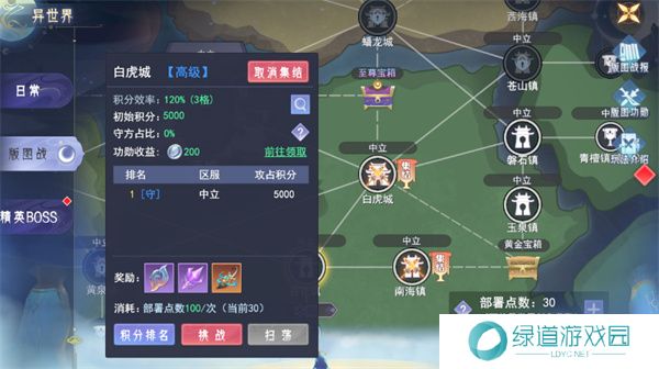 部署点消耗:占领城池时需要消耗一定的部署点。玩家可以通过在异世界-玩法界面领取更多的部署点。