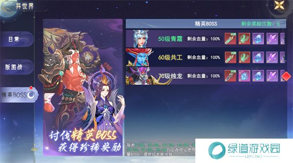讨伐精英Boss:在异世界玩法中,玩家可以挑战精英Boss。精英Boss挑战不仅会掉落丰厚的奖励,还可以获得光环幻化奖励,让角色外观更具特色。