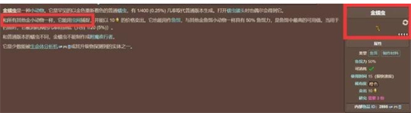 玩家还可以使用虫网来捕获金蠕虫,这些金蠕虫可以以10金币的价格售出。金蠕虫是金色着色的普通蠕虫,非常罕见,适合用作鱼饵。它的鱼饵力高达50%,是所有鱼饵中最高的可用值,能够增加大量的钓鱼效率。