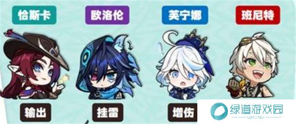 玩法:结合水元素芙宁娜、雷元素欧洛伦的技能配合,再通过班尼特的增益效果,提升恰斯卡的伤害输出。