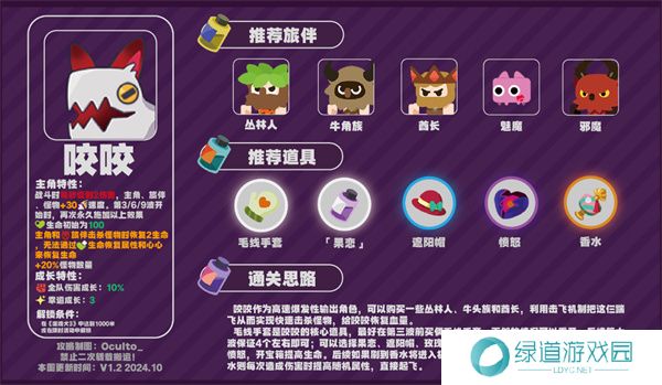咬咬是一个高速爆发输出角色,专注于快速击杀怪物并恢复血量。在选择旅伴和道具时,我们的目标是最大化击杀效率,同时保持生存能力。以下是具体的打法和推荐策略: