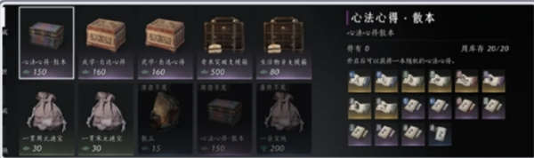心法心得·散本:帮助角色提升心法技能。