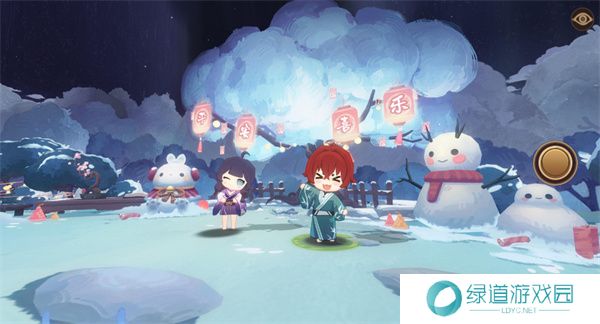 玩家可以通过本寮的小纸人进入合影模式,选择心仪的位置和动作,在树木下拍照。
