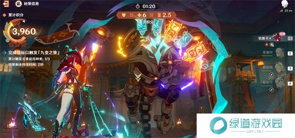 在挑战过程中,多次切换角色并触发不同的元素反应来激活增益效果。触发增益后,屏幕下方会显示增益倒计时,玩家需确保增益效果的持续覆盖,以提高战斗效率。