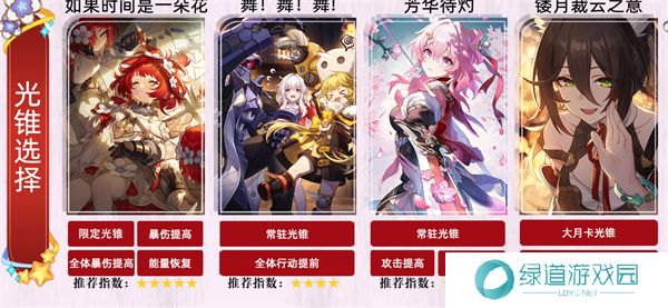 芳华待灼:如果队伍中有两个命途以上的角色,使用此光锥能获得爆伤加成,适合大黑塔队。