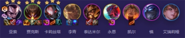 核心英雄:亚索、贾克斯、卡莉斯塔、李青、泰达米尔、永恩、凯尔、慎、艾瑞莉娅