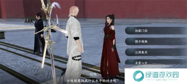 如果有同区的小芽号,可以组队前往汴京演武场(1009,641),与阮映对话选择挑战神秘高手(试剑)-初窥门径。