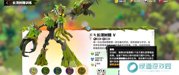 协同效果: 如果部队完全由长须树精组成,亲和技能的增益效果将自动生效。这个技能也可以与其他防御提升效果叠加,增加团队的防御能力。
