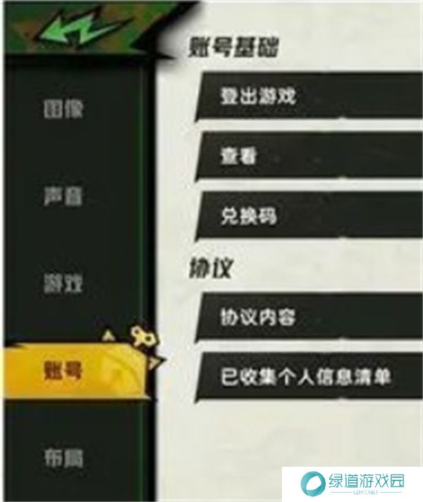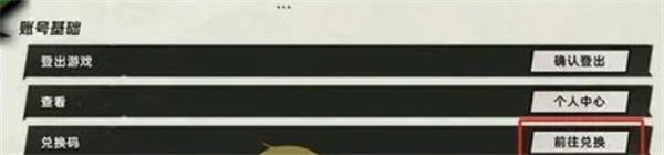 2、然后在游戏设置页面,点击左侧的账号,在账号基础中点击兑换码前往兑换。