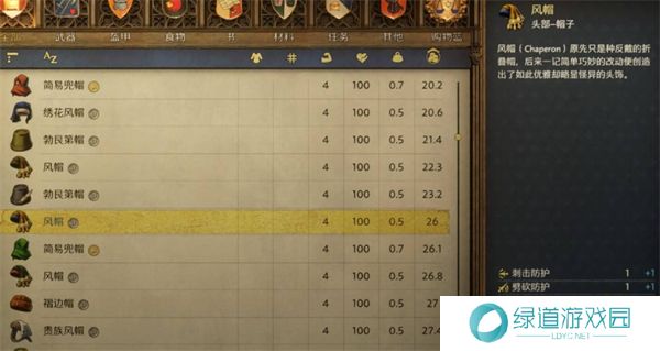 头部:风帽(约26格罗申)
