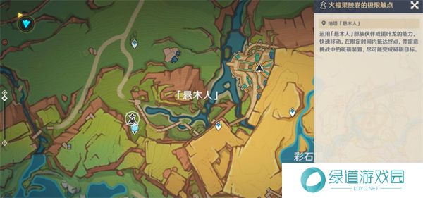 打开活动界面,点击挑战详情并选择关卡,在地图上快速定位到悬木人的挑战位置。