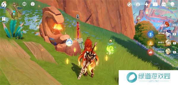 在七天神像旁边的下层,你会看到挑战装置,提前与旁边的匿叶龙标记互动,或直接使用基尼奇角色来参与挑战。