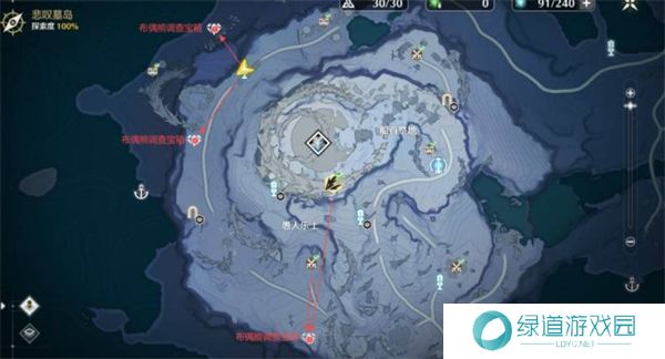 位置:标记点上会有布偶熊正在挖掘(3朴素奇藏箱)。直接点击调查,无需击败声骸。