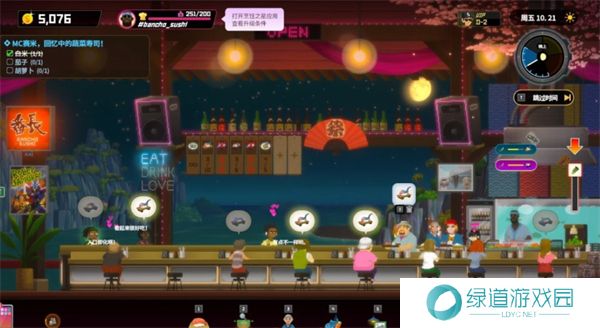 每次开业前,玩家需要确认当前餐厅的食材(如各种鱼肉片和香辛料等)。根据现有食材,部署“今日菜单”,确保菜单内容符合库存情况。