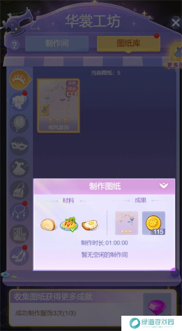 工坊内加入图纸:将已获得的服饰图纸加入到华裳工坊中。