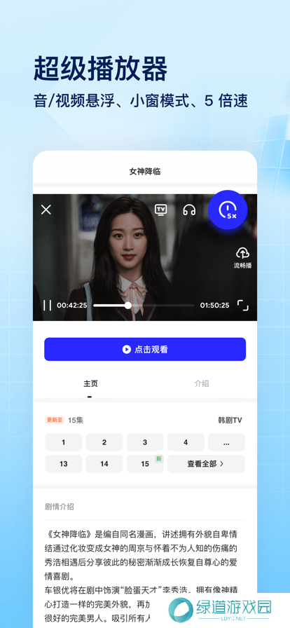 3、视频播放器可进行倍速调整、云收藏、快进/退10秒等操,播放视频更方便。