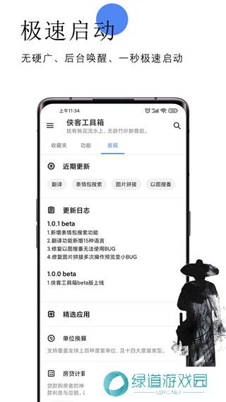 侠客工具箱app是一款功能极为全面的手机工具箱工具,在该工具箱中还可以直接的帮助用户们去处理各种音视频文件,同时还支持查询、计算、清理等多种功能,轻松即可帮助用户们解决日常生活中的所有难题。在该工具箱当中所有功能都是免费的,用户可以自由使用,为了方便快速找到所需的工具,还格外的设计了收藏夹功能,让用户们可以从中轻松找到自己想要使用的工具。