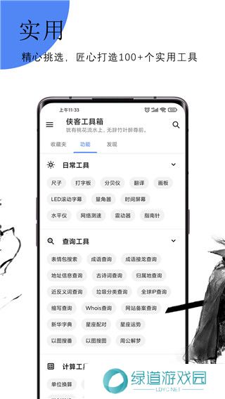 侠客工具箱app是一款专为用户们打造的办公常用app,在该平台中为用户们提供了日常工具、查询工具、计算工具等多种功能。这些不同分类的工具可以帮助用户解决日常生活和工作中的问题,并随时的为用户们提供了隐私相册、密码管理、应用锁等功能,专为保护用户隐私而设计。
