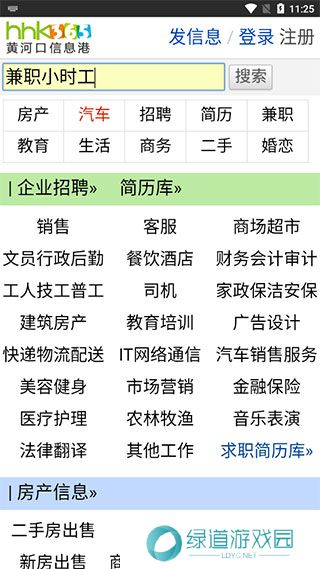 1、首先打开黄河口信息港手机版,在首页我们可以找工作、婚恋交友、二手交易、教育培训等服务。