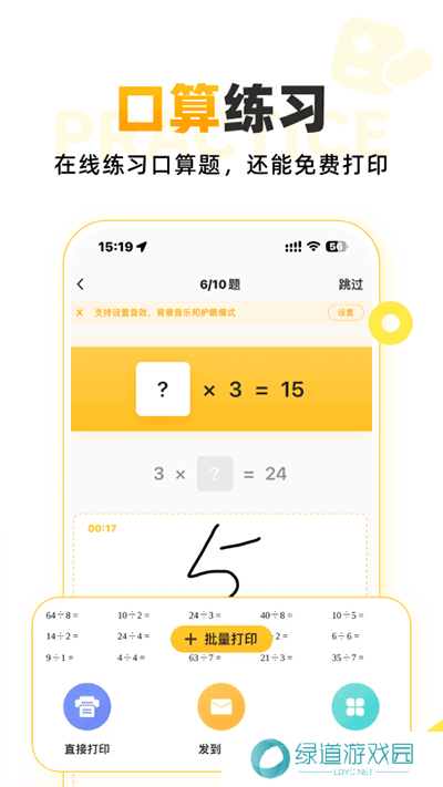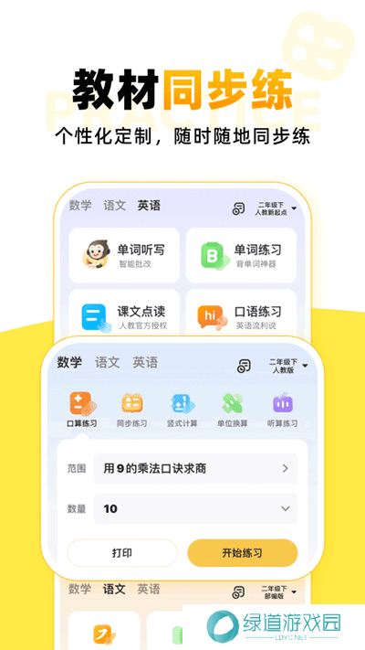 1、支持口算刷题,随机出简单的口算题练习,训练孩子的反应及计算能力。