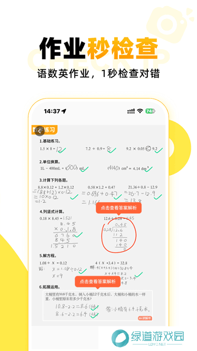 2、只需对数学作业拍照,一秒就能帮您判断对错,并进行针对性的分析辅导。