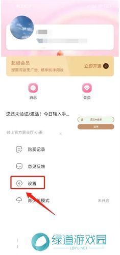 1、进入可乐漫画app右下角"我的",点击【设置】。