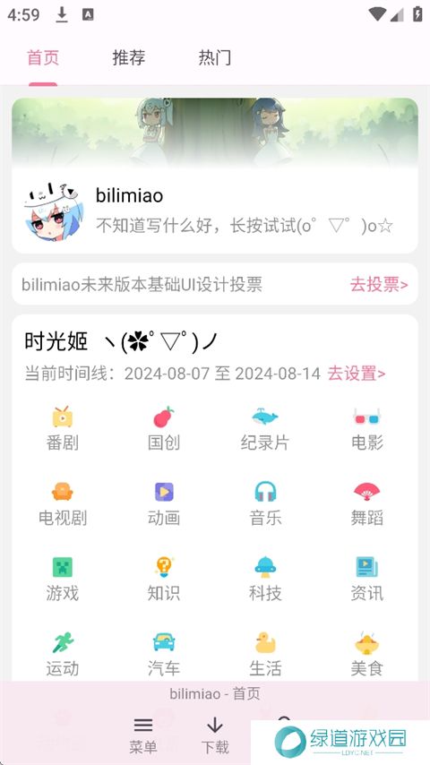 bilimiao是B站up主自己研发的一个第三方视频播放软件,设置时光机重新回味以往每周的热门视频,看看那时有什么热点话题。无需登录、无需大会员,默认将视频以1080P超清画质播放,也可以选择一键将视频作品下载到手机本地,带来一个更简洁、更纯粹的播放体验。