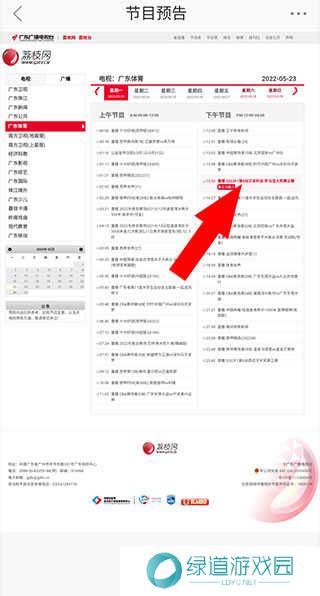 2、点击下方位置即可查看本周广东体育频道节目表,正在直播的节目点击即可在线播放