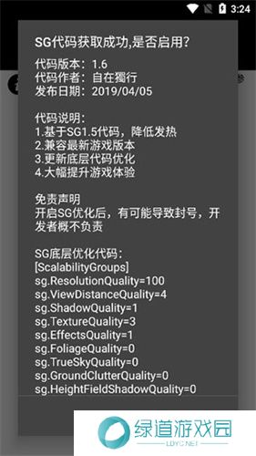 2、用户还可以直接开启SG优化模式,它会根据手机的配置自动调节画面。