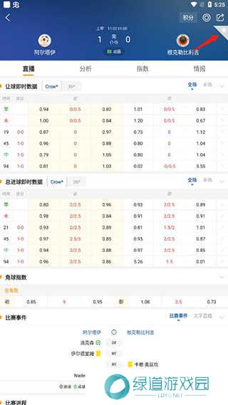 2、打开比赛后,右上角有一个五角星,点击收藏;