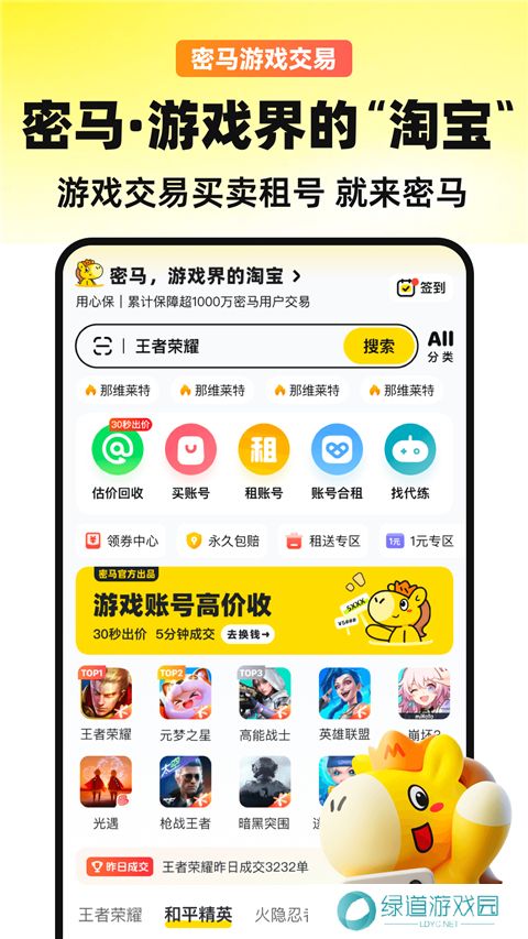 密马游戏交易平台能够为玩家们提供最全面的账号交易服务,千万真实游戏账号资源库,从游戏大神们退坑的游戏账号,到入坑新游戏的自抽初始号,这里全都有,一键购买心仪的账号,轻松体验游戏新角色。