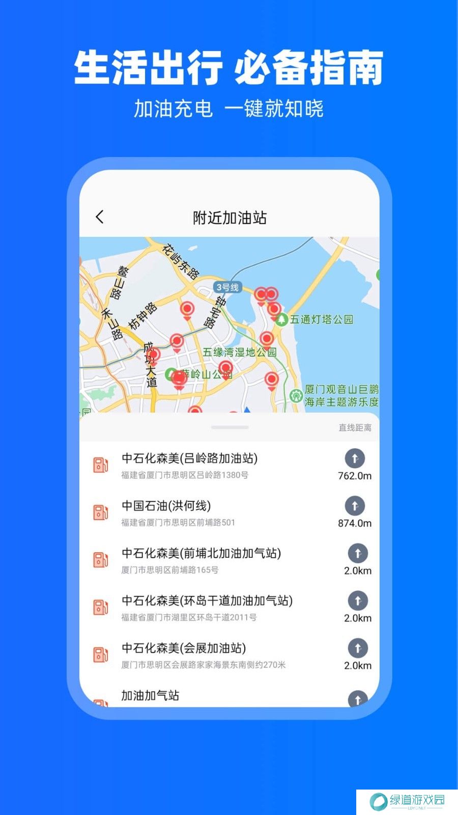 1、详细分类目的地,包括食物、加油站、停车场、银行、酒店等,快速方便找到目的地。