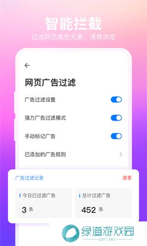 2、内置的广告过滤系统有效屏蔽网页上的弹窗广告和横幅广告,为用户提供清爽无扰的浏览体验。